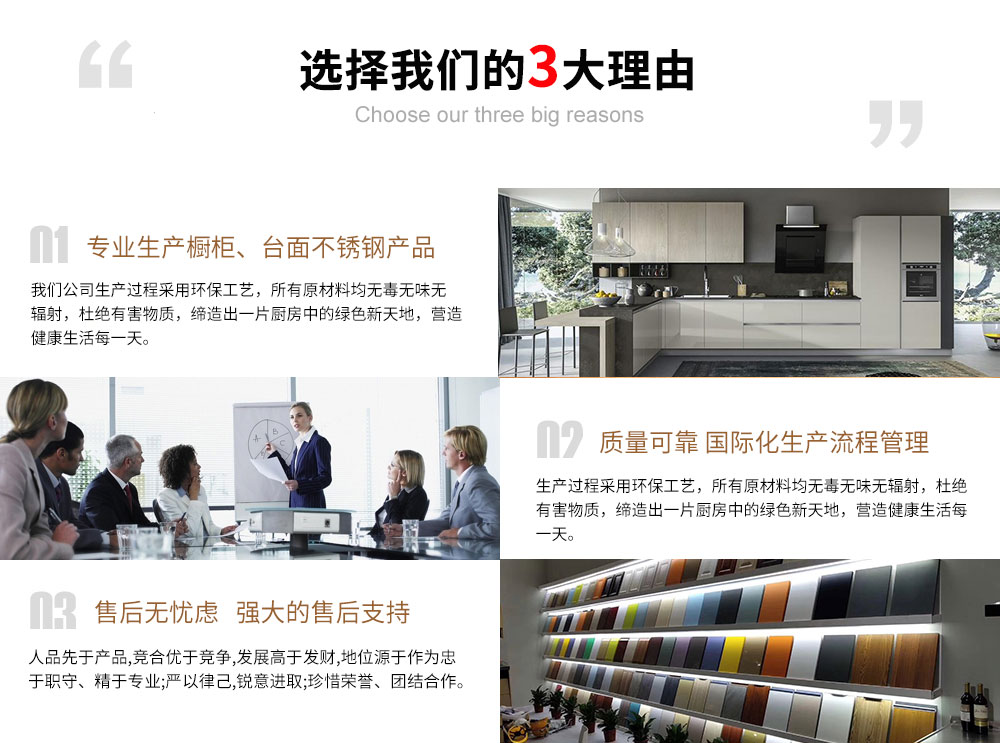淮安蒂洛奇家居不銹鋼櫥柜廠家專業(yè)生產(chǎn)不銹鋼櫥柜、不銹鋼整體櫥柜、不銹鋼臺面、等產(chǎn)品,蒂洛奇櫥柜堅(jiān)信以客戶生活為己任,生產(chǎn)過程采用環(huán)保工藝,所有原材料均無毒無味無輻射,杜絕有害物質(zhì),締造出一片廚房中的綠色新天地,營造健康生活每一 天。